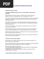 b. /enomene juridice secundare-in care aspectul juridic este mai puin e)ident fa de cel social responsabilitatea!. .rin intermediul metodei sociologice, cunoaterea dreptului se mbogete n unele domenii al poziiei subiectului fa de reglementrile juridice, al cercetrii cauzelor concrete de nclcare a dreptului, cercetarea sociologic a dreptului i )a fi util inclusi)e legiuitorului pentru c astfel acesta )a afla rezultatul propriei creaii! 0. #etode cantitative #1T2D131 4(T5T4T561 7 au aprut i s-au dez)oltat ca urmare a necesitii introducerii calculatoarelor n domeniul dreptului, a informatizrii [Link] de informatic juridic sunt orientate spre: a. 1laborarea &i sistemati!area le$islaiei b. 1videna le$islativ c. 1videna criminolo$ica .entru moment dei calculatorul ajuta foarte mult dreptul nu se pune probabilitatea nlocuirii judectorului cu calculatorul. 3. -cceptiunile notiunii de drept Cu)antul drept pro)ine de la cu)antul latinesc 4directus5care inseamna drept sau dreptul directiei."omanii foloseau insa termenul ius pentru e identifica dreptul. 1..rin drept pot sa inteleg stiinta dreptului, adica ansamblul de idei, notiuni, concepte si principii care explica dreptul si prin care dreptul poate fi gandit. 2.'reptul este in acelasi timp o te6nica si o arta.'teptul este te6nica pentru ca normeaza acti)itatea umana si este o arta pentru ca reprezinta un ansamblu de mijloace pe care di)ersele autoritati ale statului sau cei care aplica dreptul le intrebuinteaza pentru a crea sau dupa caz pentru a aplica dreptul.7iciodata insa arta dreptului nu trebuie sa fie despartita de stiinta dreptului. ".'reptul este in acelasi timp o necesitate si o libertate.7ecesitatea dreptului rezulta c6iar din scopurile statului, iar libertatea din scopurile fiintei umane. 8.'in drept se mai intelege dreptul obiecti). Dreptul obiectiv este o premise a e,istentei drepturilor si libertatilor [Link] obiectiv repre!inta normele juridice create de un stat. -.Dreptul subiectiv repre!inta facultatea sau posibilitatea unui subiect de drept de a-si valorifica sau de a-si apara interesele fata de terti .9n aceasta acceptiune dreptul exprima aspectul de [Link] mai importante drepturi subiecti)e ale omului sunt inscrise in declaratiile de drept ex: declaratia uni)ersala a drepturilor omului, pre)ederile constitutionale cu pri)ire la drepturile si libertatile fundamentale. ..Dreptul po!itiv repre!inta totalitatea normelor juridice in vi$oare intr-un stat.'reptul poziti) are urmatoarele trasaturi:-aplicabilitate imediata si continua2 -