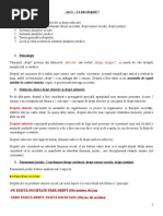 Bibertatea sociala a omului cunoastere, decizie, actiune! inseamna responsabilitate. 7i)elul si masura responsabilitatii sunt apreciate infunctie de gradul si continutul procesului de transpunere constanta in practica a pre)ederilor normelor sociale. "esponsabilitatea este, in esenta, de ordin moral dar si politic, juridic. .rin responsabilitate omul se raporteaza la normele si )alorile unei societati, in mod acti) si constient. 22. Definiti si enumerati functiile dreptului [Link] functiilor dreptuluiuti in domeniul reali!arii dreptului -reprezinta directiile fundamentale ale mecanismului juridic l-a indeplinirea carora participa intregul sistem de drept prcum si organle institutile si autoritatile publice abilitate cu atrib3 -dreptul are ca principala functie ca rezol)area conflictelor juridice dintre indi)izi si grupuri dintre grupuri. #unctiile dreptului reprezinta atat scopul cat si mijlocul prin care se atinge acest scop. 9re!entarea functiilor dreptului 0. functia de institutionalizare sau de formalizarea juridica a organizarii social politice,in )irtutea acestei functii dreptul asigura cadrul legal de functionare a intregului sistem social organizarea , functionarea,atributiile ,competentele institutilor si a autoritatilor publice sunt stabilite prin intermediul dreptului. (. #unctia de conser)are,aparare si garantare a )alorilor fundamentale ale soocietatii,dreptul apare ca un factor al dez)oltarii sociale astfel,dretul defineste un cadru general de desfasurare a relatiilor sociale, identifica un tipar de comportament si stabileste principile de baza ale con)ietuirii sociale <. #unctia de conducere a societatii,iz)oarele dreptului in primul rand actul normati) pot fi considerate si acte de conducere sociala. .rin intermediul lor dreptul incearca sa normeze raporturile intra si inter sociale 8. #unctia normati)a, aceasta deriza din faptul ca dreptul este destinat sa asigure poporului careia sa i se subsimeze comportamentele indi)iduale. Este o functie de sinteza care implica pe toate celalalte. 7ormati)itate juridica este o componenta a normati)itati sociale, prin normele si institutile sale dreptul incearca a programa libertate de actiune a omului. 'reptul este un mijloc eficace de organizare si conducere a societatii. 2". orelatia normelor juridice cu normele etice 'reptul sa desprins treptat din normele obicei astfel ca putem afirma ca morala precede dreptul. 'in punc de )edere istoric dreptul a e)oluat odata cu morala iar din punct de )edere stiintifice acestea au constituit au constituit obiectul central al teoriei si filozofiei dreptului. "aportul dintre drept si morala poate fi apreciat din ( obiecti)e: 0 'reptul este un minim de morala ( /tatul este singurul temei juridic
