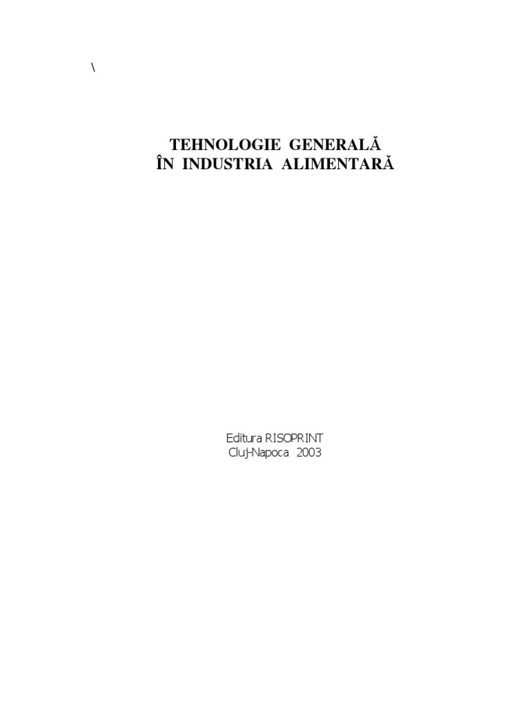 20. Culache, Domnica i Platon, V. Tehnologia zahrului, Ed. Tehnic, Bucureti, 1883; 21. Chintescu, G. ndrumtor pentru tehnologia brnzeturilor, Ed. Tehnic, Bucureti, 1980; 22. Chintescu, G. i Grigore, t. ndrumtor pentru tehnologia produselor lactate, Ed. Tehnic, Bucureti, 1982; 23. Dumitrescu, H. i colab. Controlul fizico-chimic al alimentelor, Ed. Medical, Bucureti, 1997; 24. Florea, T. Chimia alimentelor, Vol. II, Ed. Academica, Galai, 2001; 25. Gherghi, A., Iordchescu, C., Burzo, I. Meninerea calitii legumelor i fructelor n stare proaspt, Ed. Tehnic, Bucureti, 1986; 26. Gutulescu, I. i Dautner, M. Tehnologia prelucrrii legumelor i fructelor, Ed. Did i Ped., Bucureti, 1973; 27. Gu, Camelia Laptele i produsele lactate, Ed. Risoprint, Cluj-Napoca 2002; 28. Guzun, Valentina, Mustea, Gr., Rubov, S., Banu, C., Vizireanu, C. Industrializarea laptelui, Ed. Tehnica-Info, Chiinu, 2001; 29. Iliescu, Lucia, Rappaport, I. i Fluerau, I. Tehnologia produselor zaharoase, Ed. Did. i Ped., Bucureti, 1974; 30. Leonte, M., Florea, T. Chimia alimentelor, Vol. I, Ed. Pax Aura Mundi, Galai, 1998; 31. Marinescu, I. i colab. Tehnologii moderne n industria conservelor vegetale, Ed. Tehnic, Bucureti, 1986; 32. Mencinicopschi, Gh., Kathrein, I., Teodoru, V. Biotehnologii n prelucrarea produselor alimentare, Ed. Ceres, Bucureti, 1987; 33. Mihalca, Gh., Mihalca, Veronica Tehnici de pstrare a alimentelor prin frig, Ed. Tehnic, Bucureti, 1986; 34. Modoran, Dorel, - Tehnologii fermentative, Vol. I, Ed. I.C.P.I.A.F., ClujNapoca, 2002; 35. Moldoveanu, Gh., Niculescu, N. I., Melniciuc, G. Panificaia modern, Ed. Tehnic, Bucureti, 1969; 36. Moraru, C. i Rpeanu, R. Tehnologia industrializrii porumbului, Ed. Tehnic, Bucureti, 1972; 37. Musc, M. Tehnologia produselor alimentare, Universitatea Galai, 1980; 38. Musc, M. Tehnologia general a industriei alimentare, Universitatea Galai, 1984; 39. Neamu, G., Biochimie alimentar, Ed. Ceres, Bucureti, 1997; 40. Nedeff, Valentin, Materii prime i tehnologii generale n industria alimentar, Universitatea Bacu, 1998; 41. Niculescu, G. i Petrescu, N. Fabricarea produselor zaharoase, Ed. Tehnic, Bucureti, 1967; 42. Niculescu, N. I. Materii i materiale pentru producerea alimentelor, Ed. Ceres, Bucureti, 1981;