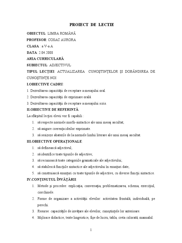 cunotinele despre adjective i li se vor prezenta obiectivele operaionale.