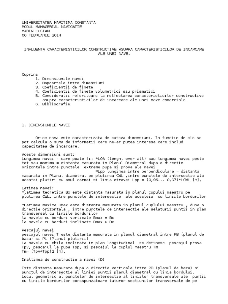 sunt cuprinse intre 1,3 si 2. Valorile mici corespund pentru navele cu o