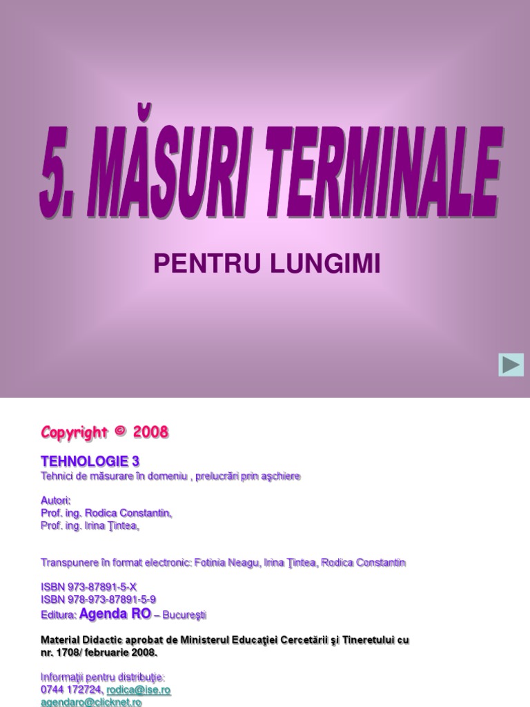 Tehnici de msurare n domeniu , prelucrri prin achiere Autori: Prof. ing. Rodica Constantin, Prof. ing. Irina intea, Transpunere n format electronic: Fotinia Neagu, Irina intea, Rodica Constantin
