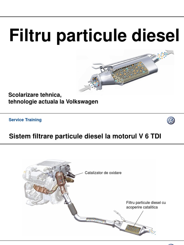 Sistem filtrare particule diesel la motorul V 6 TDI