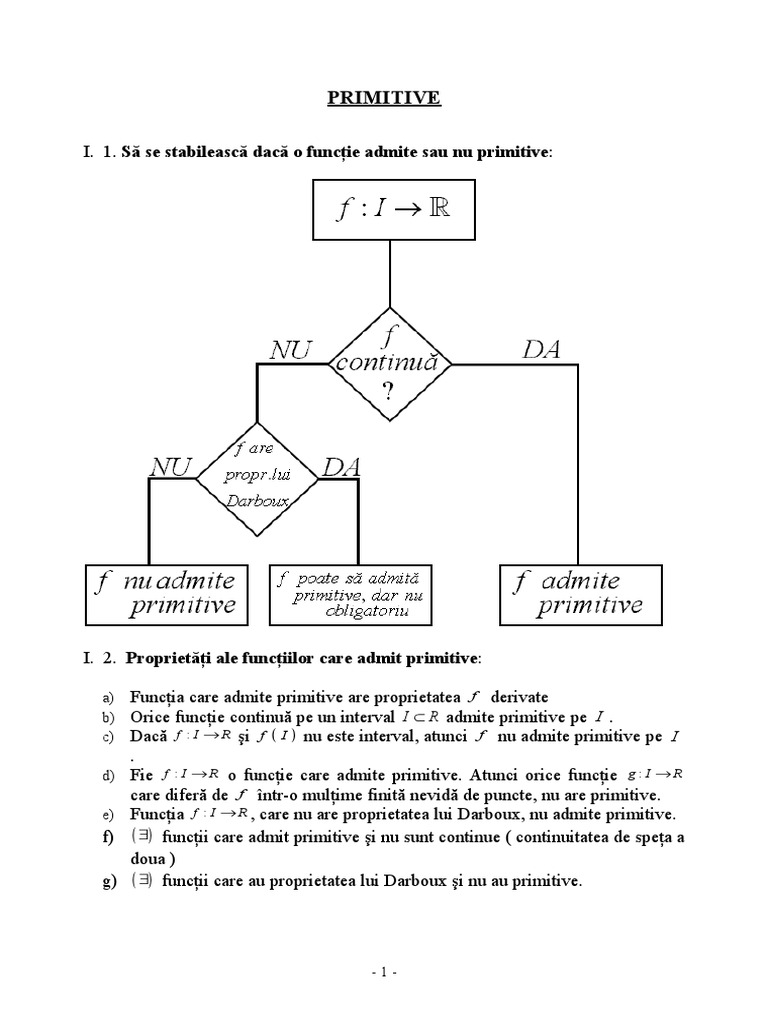 I. 1. S se stabileasc dac o funcie admite sau nu primitive: