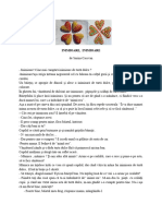 actiona de fiecare data in consecinta, fara a lasa obiceiurile pe care le au sa se transforme in capcane. -e&en"a "ivinitatii omului O legenda veche spune ca mai demult oamenii erau buni. &ar au profitat atat de mult de puterea divina din ei incat stapanul tuturor "eilor a decis sa le ia aceasta putere si sa o ascunda intr-un loc unde va fi imposibil de gasit. $ot ce i-a ramas sa faca era sa gaseasca ascun"atoarea potrivita. - fost convocat consiliul "eilor pentru a se gasi solutia. Seii au sugerat: -&e ce sa nu ingropam puterile omului in pamant, :rahma a raspuns: - u, nu vom face asta pentru ca omul va sapa adanc si le va gasi -tunci "eii au spus: -1n acest ca", sa le trimitem divinitatea pe cel mai adanc fund al oceanului' &ar :rahma a raspuns din nou: -.ai devreme sau mai tar"iu omul va e%plora adancurile oceanului si cu siguranta ca o vor gasi si o vor aduce la suprafata -tunci "eii s-au aratat invinsi: - ici pamantul, nici oceanul nu sunt locuri unde puterea divina sa fie in siguranta, insa alte idei de ascun"atoare nu mai avem. :rahma a e%clamat dintr-o data: -1ata ce vom face cu divinitatea omului' O vom ascunde adanc inauntrul lui, pentru ca este singurul loc unde nu va cauta. &e atunci incoace, conform legendei, omul a cautat in toata lumea, a e%plorat, a urcat si a sapat cautand ceva ce a fost in tot acest timp inauntrul lui. #ovestea cutiei cu piersici +n profesor a dat fiecarui student ca tema pentru lectia de saptamana viitoare sa ia o cutie de carton si pentru fiecare persoana care ii supara, pe care nu pot sa o sufere si sa o ierte sa puna in cutie cate o piersica, pe care sa fie lipita o eticheta cu numele persoanei respective. $imp de o saptamana, studentii au avut obligatia sa poarte permanent cutia cu ei: in casa, in masina, la lectii, chiar si noaptea sa si-o puna la capul patului. 0tudentii au fost amu"ati de lectie la inceput, si fiecare a scris cu ardoare o multime de nume, ramase in memorie inca din copilarie. -poi, incetul cu incetul, pe masura ce "ilele treceau studentii adaugau nume ale oamenilor pe care ii intalneau si care considerau ei ca au un comportament de neiertat. /iecare a inceput sa observe ca devenea cutia din ce in ce mai grea. 3iersicile ase"ate in ea la inceputul saptamanii incepusera sa se descompuna intr-o masa lipicioasa, cu miros de"gustator, si stricaciunea se intindea foarte repede si la celelalte. O problema dificila mai era si faptul ca fiecare era dator sa o poarte permanent, sa aiba gri!a de ea, sa nu o uite prin maga"ine, in autobu", la vreun restaurant, la intalnire, la masa, la baie, mai ales ca numele si adresa fiecarui student, ca si tema e%perimentului, erau scrise chiar pe punga. 1n plus, cartonul cutiei se stricase si ea a!unsese intr-o stare !alnica: cu mare greutate mai putea sa faca fata sarcinii sale. /iecare a inteles foarte repede si clar lectia pe care a incercat sa le-o e%plice profesorul cand s-au reva"ut dupa o saptamana, si anume ca acea cutie pe care o carasera cu ei o saptamana intreaga