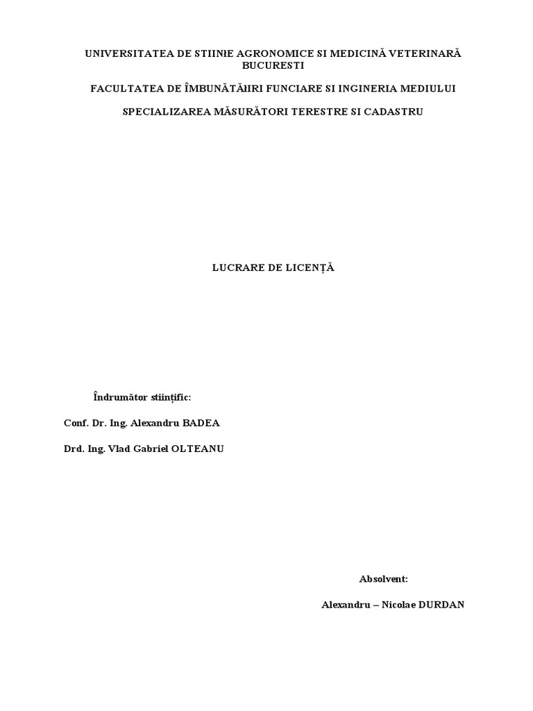 SPECIALIZAREA MSURTORI TERESTRE SI CADASTRU