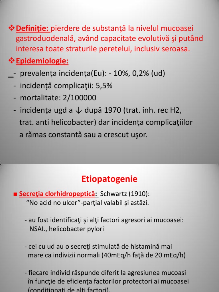 seroasa. Epidemiologie: - prevalena incidena(Eu): - 10%, 0,2% (ud) - inciden complicaii: 5,5% - mortalitate: 2/100000 - incidena ugd a dup 1970 (trat. inh. rec H2, trat. anti helicobacter) dar incidena complicaiilor a rmas constant sau a crescut uor.