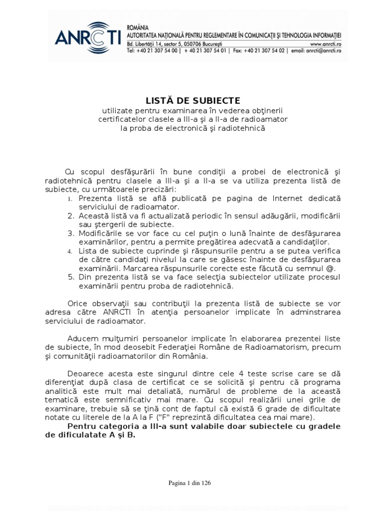 certificatelor clasele a III-a şi a II-a de radioamator