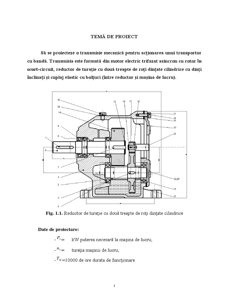 TEM DE PROIECT S se proiecteze o transmisie mecanic pentru acionarea unui transportor cu band.