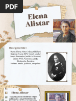 studii. 9a 19 august 1916, !lena #listar este arestata, fiind acuzata de agitatie proromaneasca si inc"isa pentru 6; de zile 1pana la ; octombrie4 in penetenciarul de la 0"isinau. !liberata din lipsa de probe, se retrage la Iasi. In 1917 isi finiseaza studiile la 8acultatea de $edicina din Iasi. 9a 17 august 1917 este mobilizata ca medic militar, iar in toamna aceluiasi an se anga+eaza in calitate de medic, la spitalul 0ostiu+eni, unde va functiona pina la 1 decembrie 1918. Luptatoare pentru ideal national. !lena #listar, personalitate puternica, percepea in profunzime evolutia evenimentelor istorice care se produceau, manifestind o preocupare deosebita pentru desteptarea aspiratiilor nationale ale romanilor din Basarabia, cu mult inainte de anul 1918. In numeroase articole, promova ideea de 'nire a Basarabiei cu Romania. #ctiunile sale s-au concretizat in formarea unui contingent mare de tarani propagandisti pentru a raspandi ideile nationalistilor romani printre moldovenii din gubernia Basarabia. 0auza unionista era sustinuta si promovata intr-un context istoric european defavorabil si incert, agravat de formarea blocurilor politico-militare si izbucnirea Primului Razboi $ondial in iulie 1916. 0onsecventa principiilor sale politice, participa alaturi de fortele nationle din Basarabia la infiintarea Partidului :ational $oldovenesc, in aprilie 191-, reprezentind fractiunea <Blocul $oldovenesc=. 9uptatoare neobosita, fondeaza in acelasi an, )ocietatea 0ulturala <8aclia 8emeilor )tudente la $edicina= si <9iga 0ulturala a 8emeilor din Basarabia=, pe care o conduce in calitate de presedinte. In apelul expus la 11 februarie 1918 aceasta se adresa ca intr-o ultima ruga, romanilor ne"otariti ori dezorientati* <acum ori niciodata, noi trebuie sa ne unim...>= ?rice moldovean, fie el cit de democrat, trebuie sa aleaga si sa faca tot ce se poate, sa aduca orice +ertfa, pentru a infaptui aceasta 'nire. 9a 19 februarie 1918, publica un alt anunt care are mai mult semnificatia unui apel* <0atre moldovenii din Basarabia> %oua, tuturor, ma adresez cu aceasta scrisoare pornita din adancul sufletului meu, ce bate in folosul neamuilui meu. #cum sa ne unim cu totii cu dragoste catre neam si sa lucram cat mai energic ca sa