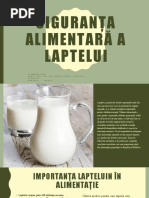 valoarea biologic, care reprezint cantitatea de azot ce este asimilat i reinut de organism n vederea acoperirii cerinelelor de substane azotate. -ai poart i denumirea de $coeficient de retenie a substanelor azotate=, av+nd valoarea egal cu ,5/. >iecare component a laptelui are un rol bine stabilit n aprarea i meninerea strii de sntate a organismului uman, astfel& fraciunile proteice ale laptelui sunt reprezentate de cele albuminice i globulinice!27# i de cazeina!73#. ?entru copiii de p+n la 6 ani laptele acoper integral necesarul de proteine. lipidele laptelui, au un nivel ridicat de digestibilitate. lactoza, st la baza formrii acidului lactic, mpiedic+nd dezvoltarea n intestin a microflorei saprofite de putrefacie Laptele este bogat n calciu i fosfor. 2 litru de lapte asigur integral necesarul de calciu pentru un copil de p+n la 2 ani precum i pentru femeile gravide ct i pentru cele care alpteaz. n lapte se gsesc cantiti nsemnate de vitamine A i B, iar la copii 2 litru de lapte asigur necesarul integral de vitamin @ i " !7 # din vitamina 0, n timp ce pentru aduli se acoper 3 # din necesarul celor dou vitamine. Laptele conine i hormoni naturali )estrogeni i progesteron*, care ns nu au activitate biologic. >ierul, cobaltul, cuprul, manganul, vitaminele C i % se gsesc n cantiti sczute n lapte. Aotodat n lapte c+t i n produsele lactate se pot nt+lni i substane nedorite )pesticide, antibiotice, elemente radioactive, nitrai i nitrii*, care n unele cazuri pot avea concentraii periculoase pentru consumator put+nd genera diferite afeciuni& boli metabolice congenitale la copii ! intoleran fa de lapte sau alergii la proteinele din laptele animal' boli legate de lipidele laptelui' boli specifice pentru coninutul laptelui n proteine ! alergia la proteinele din laptele de vac, apariia ra1itismului 1ipovitaminic' poteniale riscuri la aduli i btr+ni )osteoporoz, 1ipertensiune arterial, cataract etc*' riscul transmiterii unor boli contagioase )tuberculoza* care poate aprea prin laptele infestat i consumat fr a fi tratat termic. LAPTELE CRUD INTEGRAL 1. Sursele de produc !e de l"p#e