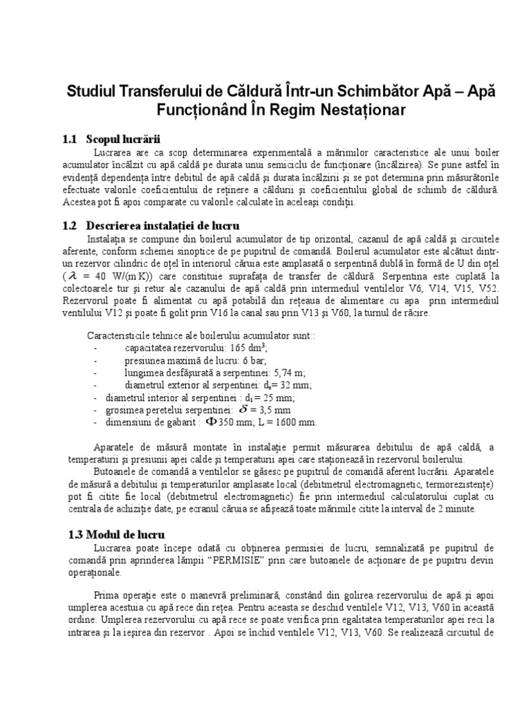 Lucrarea are ca scop determinarea experimental a mrimilor caracteristice ale unui boiler