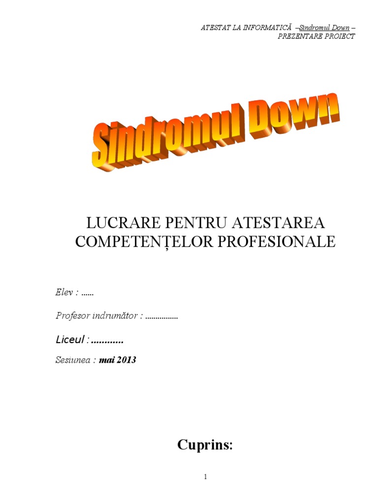 ATESTAT LA INFORMATIC Sindromul Down