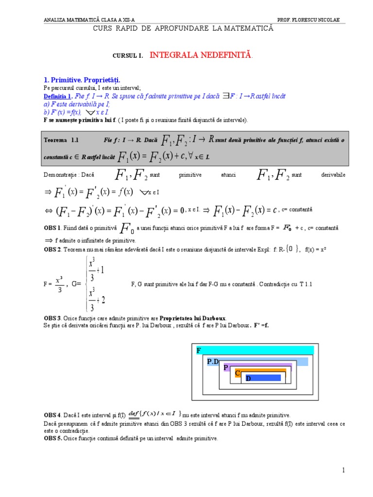 ANALIZA MATEMATIC CLASA A XII-A PROF. FLORESCU NICOLAE
