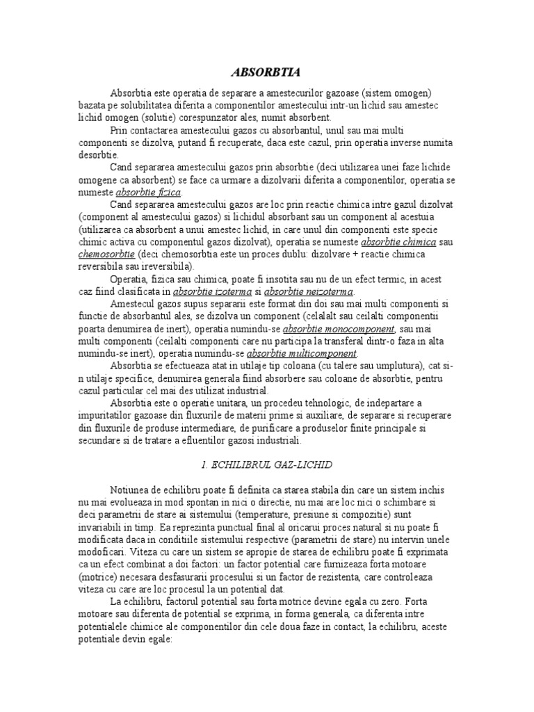 n utila!e specifice, denumirea generala fiind absorbere sau coloane de absorbtie, pentru