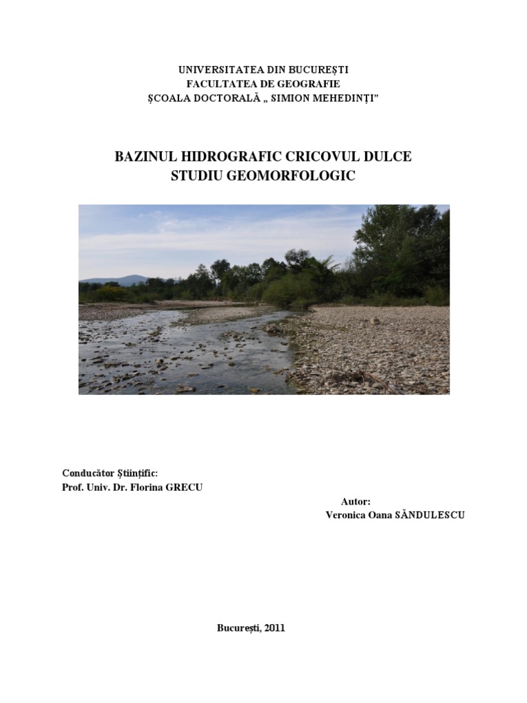 167. SNDULESCU VERONICA. (2010), Bazinul Cricovului Dulce, structura i reflectarea ei n relief,