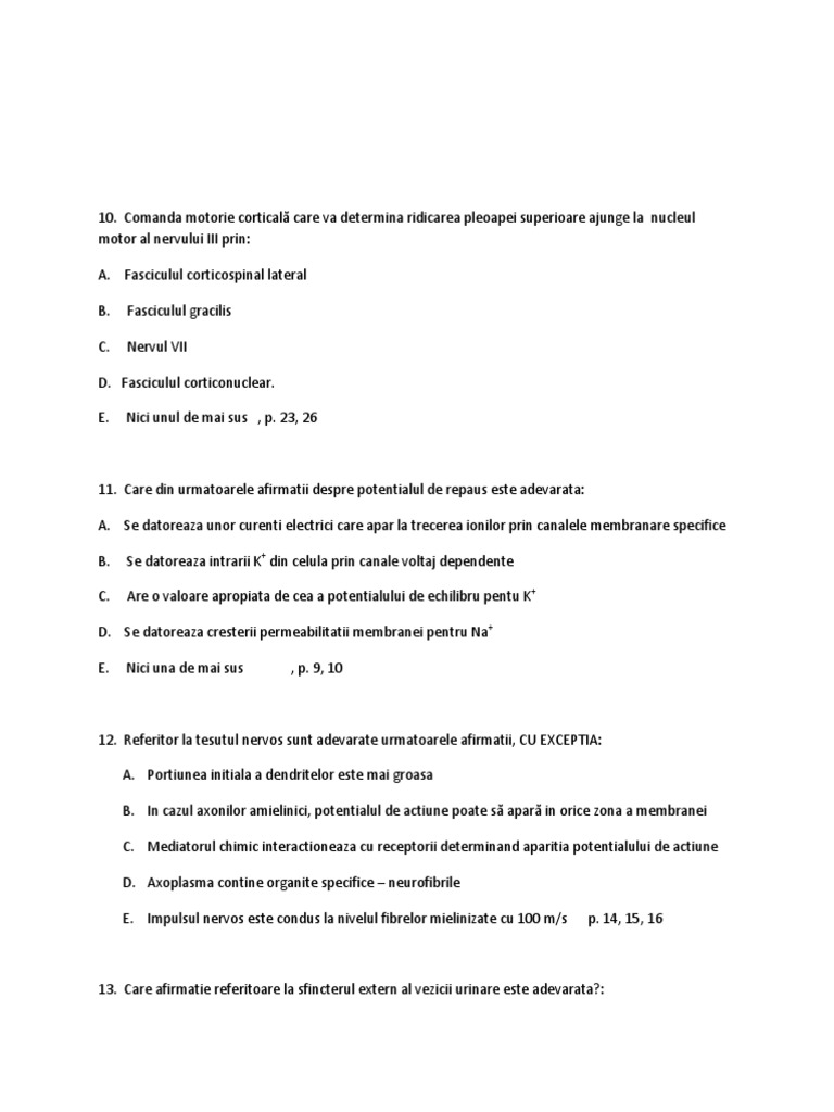 E. Impulsul nervos este condus la nivelul fibrelor mielinizate cu 100 m/s p. 14, 15, 16