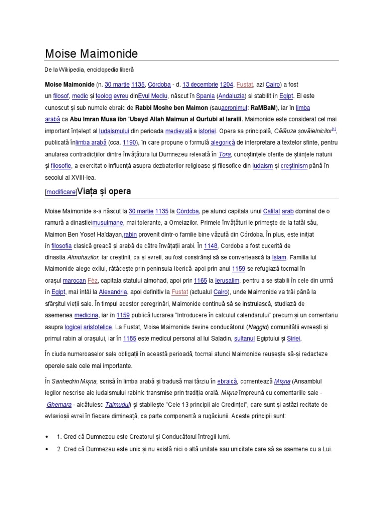 Ghemara - alctuiesc Talmudul) i stabilete "Cele 13 principii ale Credinei", care sunt i astzi recitate de