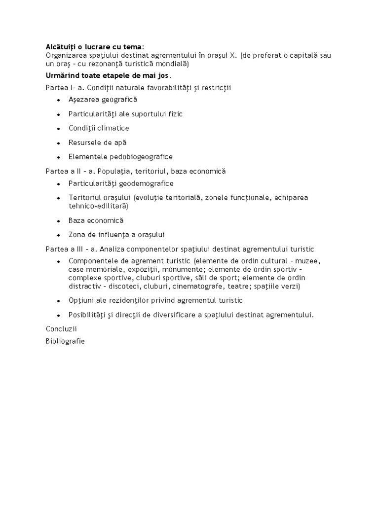Organizarea spaiului destinat agrementului n oraul X. (de preferat o capital sau