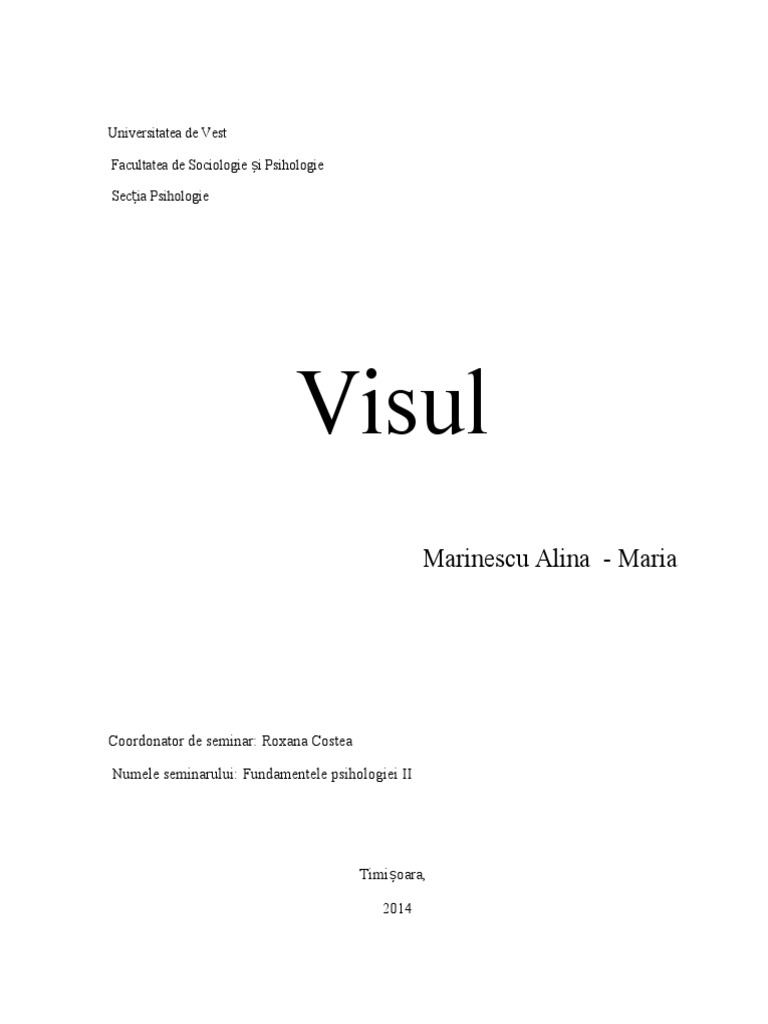 Visul este o 'orma a imaginatiei pasive" involuntare" care consta" in 'ond" in reactivarea in