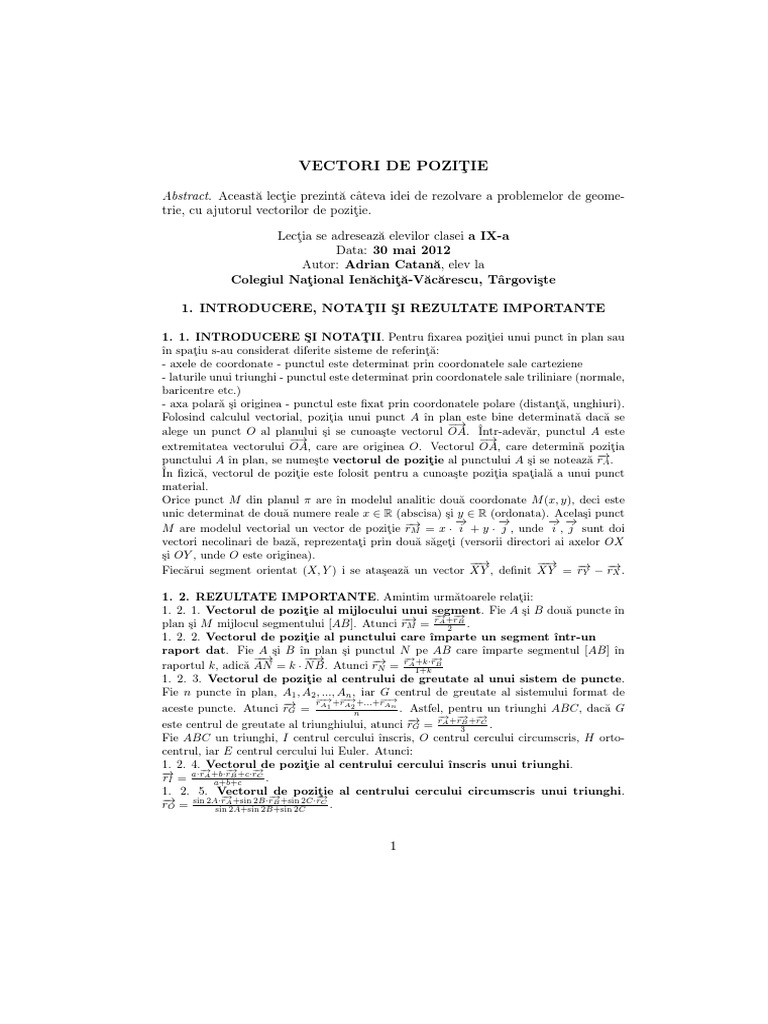 1. 2. 5. Vectorul de pozit ie al centrului cercului circumscris unui triunghi.