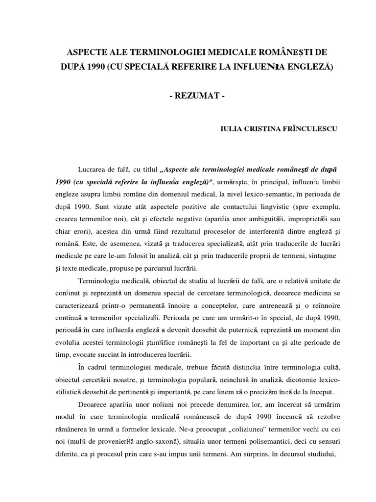 limbii engleze asupra romnei medicale a nceput s se manifeste din ce n ce mai puternic,