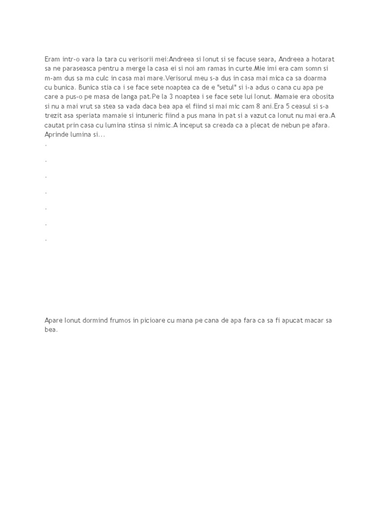 care a pus-o pe masa de langa pat.Pe la 3 noaptea i se face sete lui Ionut. Mamaie era obosita