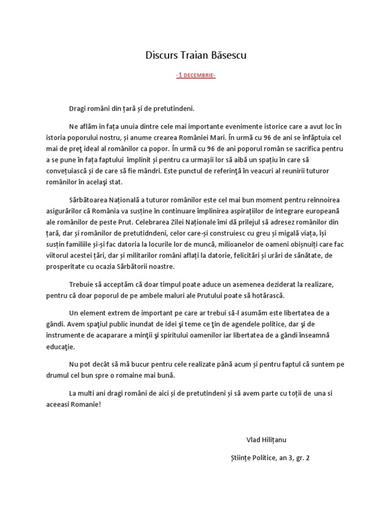 istoria poporului nostru, i anume crearea Romniei Mari. n urm cu 96 de ani se nfptuia cel