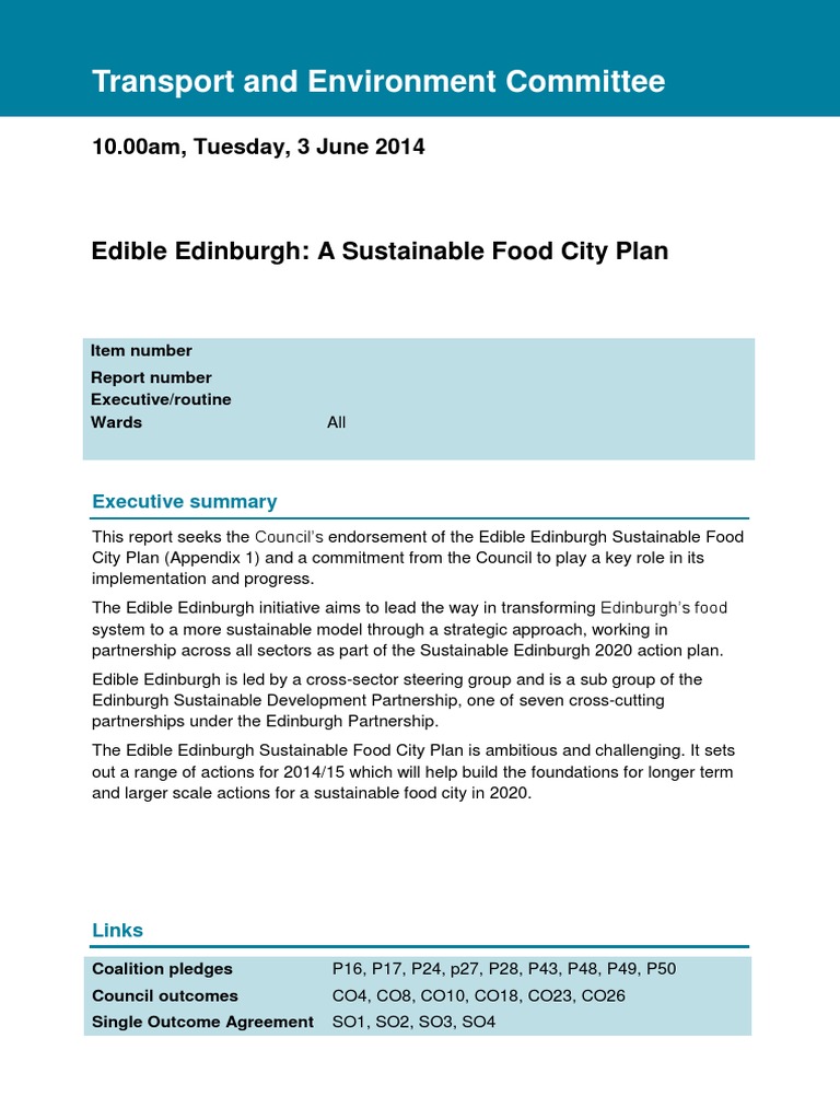 6.1 By endorsing the Edible Edinburgh Sustainable Food City plan, the Council is