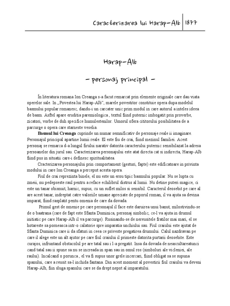Caracterizarea lui Harap-Alb