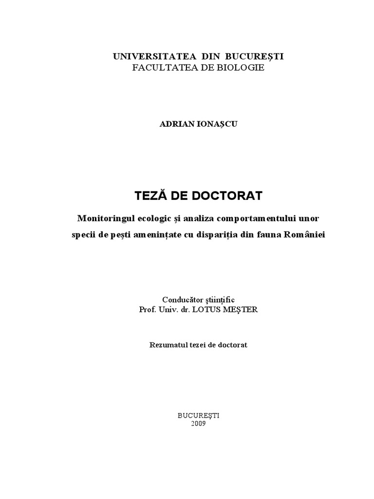 3 Adrian Ionacu, Nicolae Crciun. 2005. Use of behavioral ecology in the