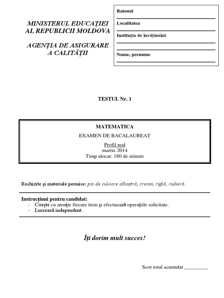 Rechizite i materiale permise: pix de culoare albastr, creion, rigl, radier.