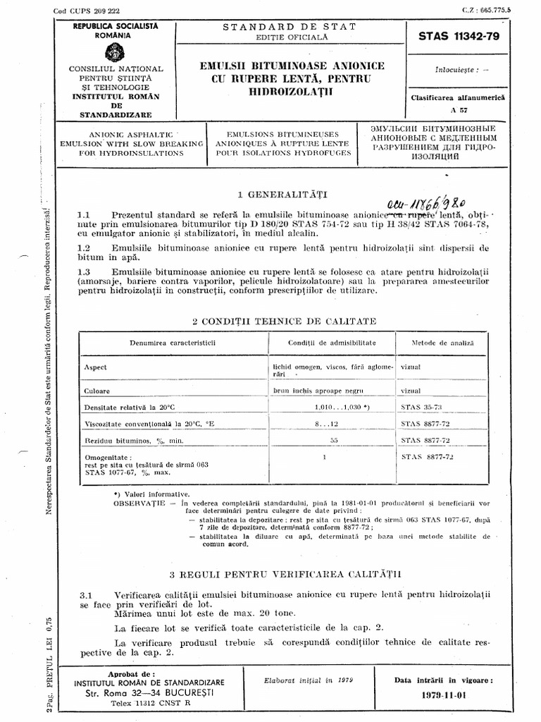 1.1 Prezentul standard se la, emulsiile bituminoase