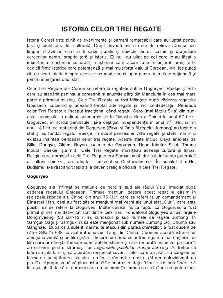 Cele Trei Regate au dinuit din anul 57 .Hr. pn la cucerirea Goguryeo de ctre