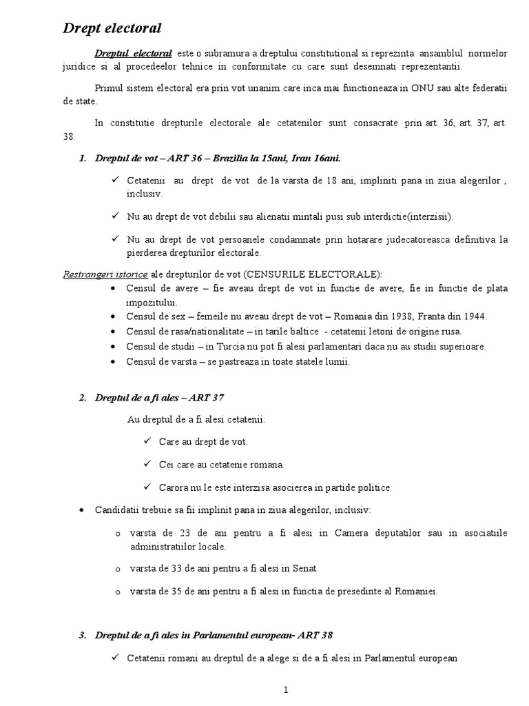 1. Dreptul de vot ART 36 Brazilia la 15ani, Iran 16ani.