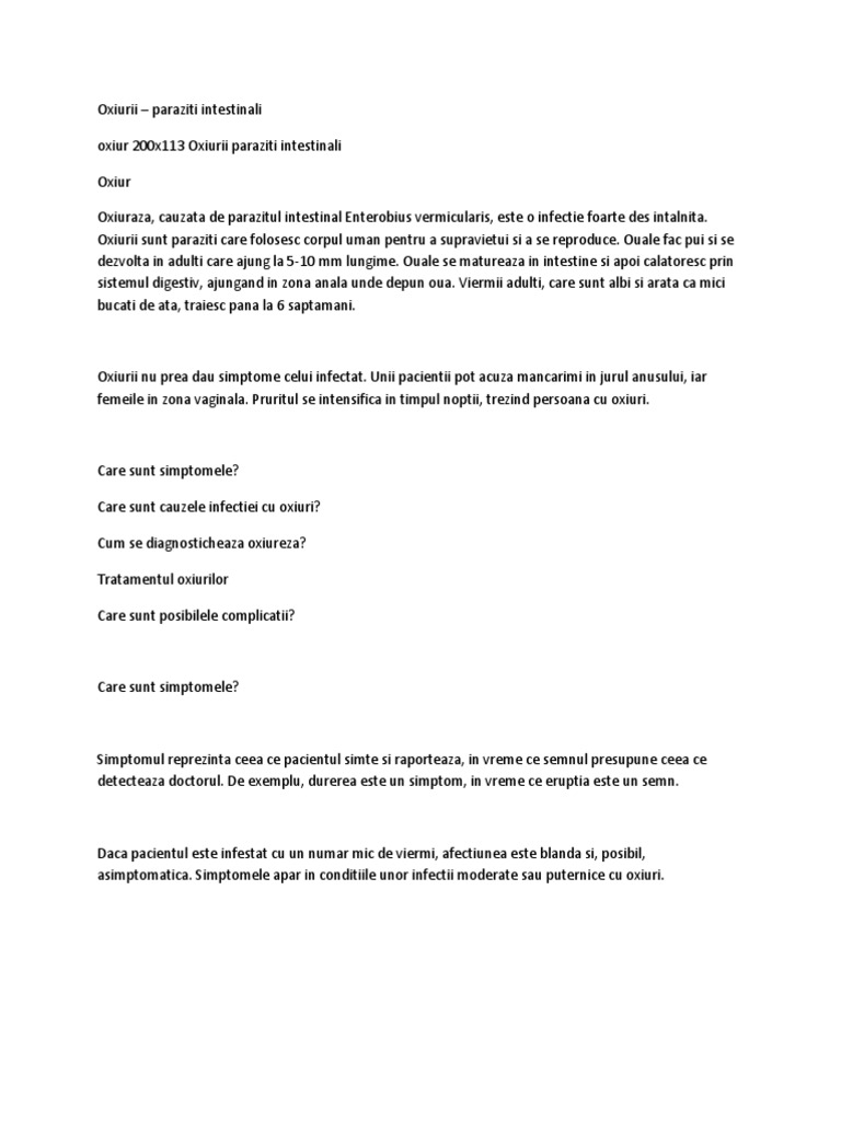 oxiuri Oxiurii paraziti intestinali