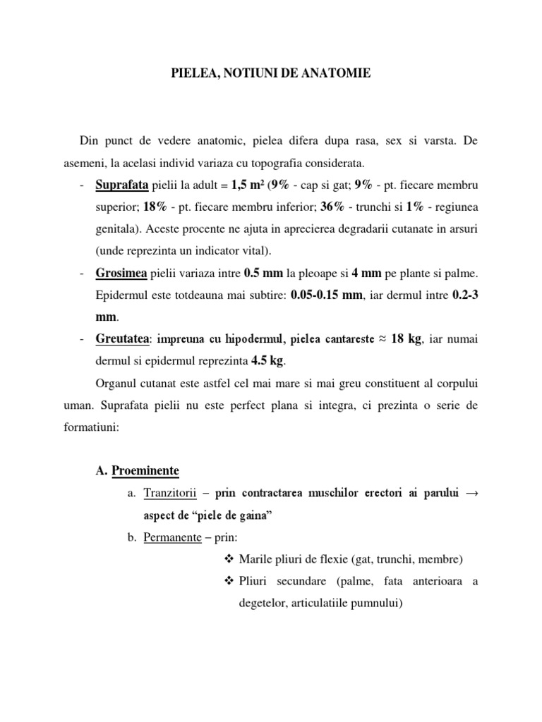 - Suprafata pielii la adult = 1,5 m (9% - cap si gat; 9% - pt. fiecare membru