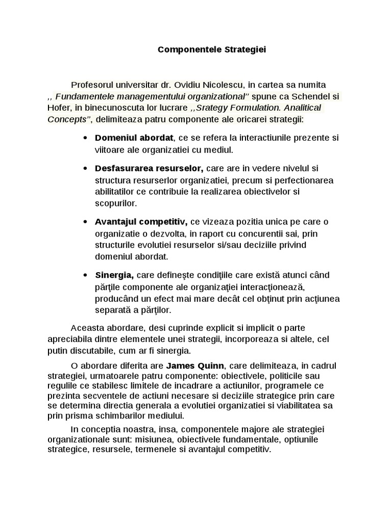 apreciabila dintre elementele unei strategii, incorporeaza si altele, cel