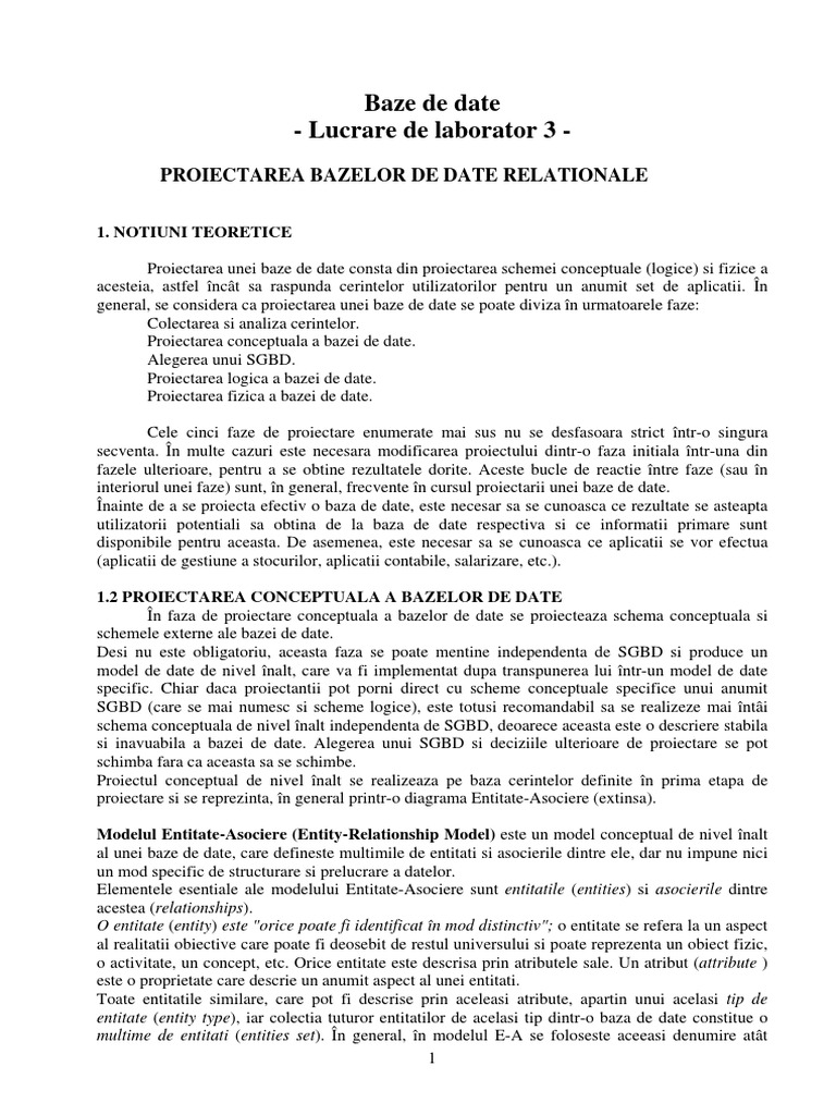 PROIECTAREA BAZELOR DE DATE RELATIONALE