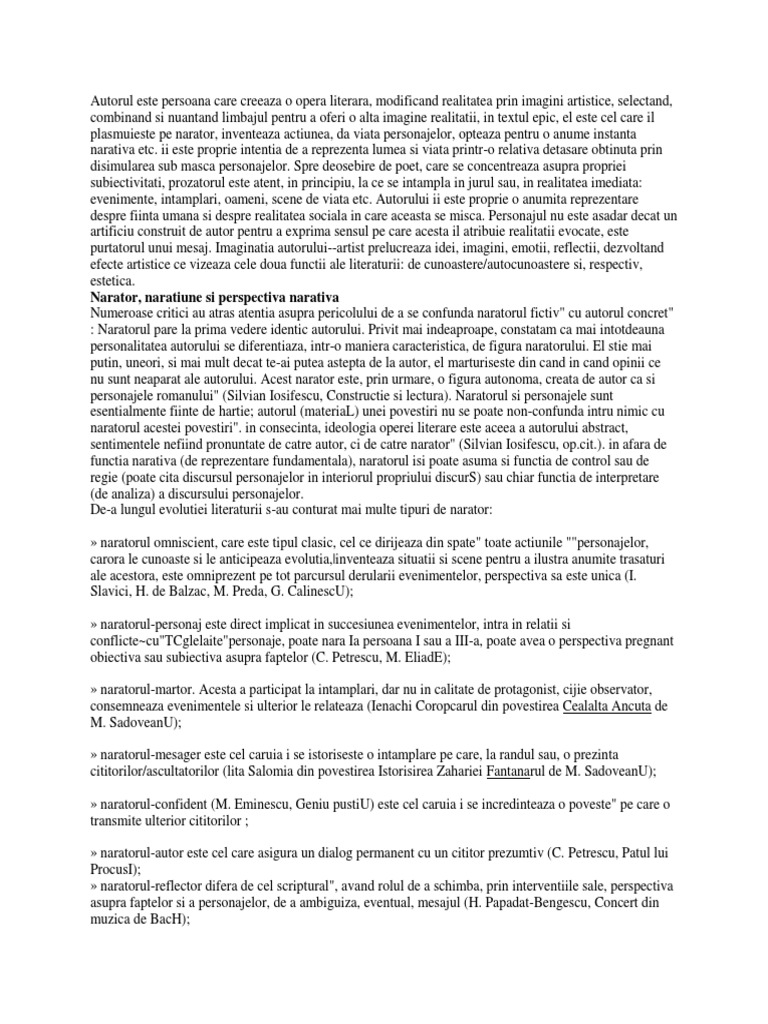 nu sunt neaparat ale autorului. Acest narator este, prin urmare, o figura autonoma, creata de autor ca si