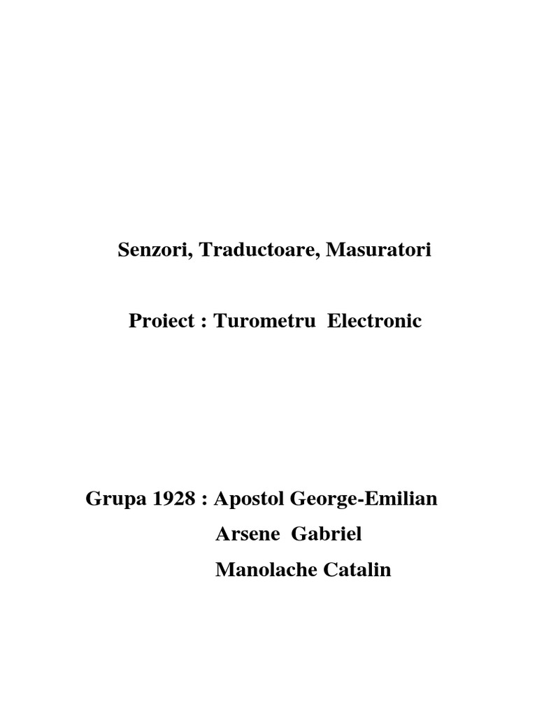 Inainte de prezentarea turometrului propriu-zis discutam despre