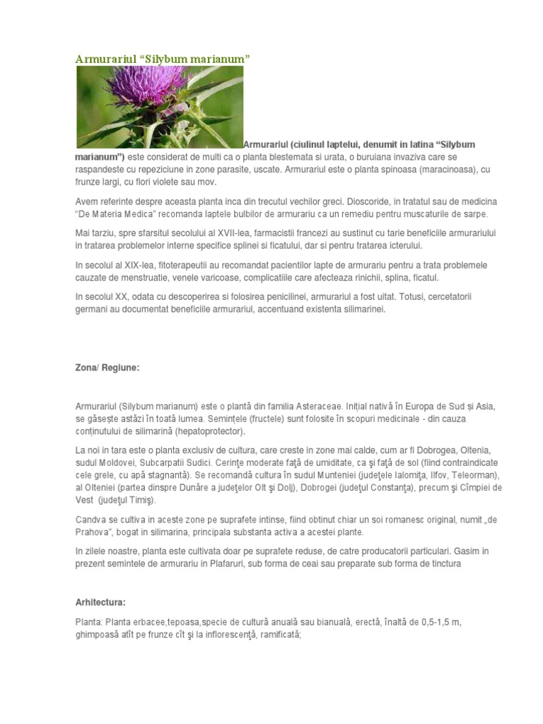 germani au documentat beneficiile armurariul, accentuand existenta silimarinei.