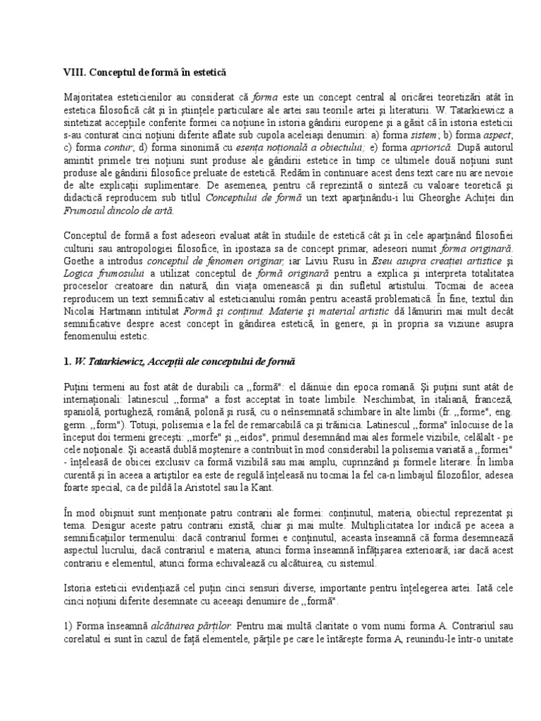 1. W. Tatarkiewicz, Accepii ale conceptului de form