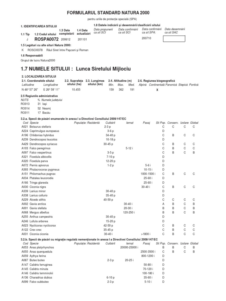 FORMULARUL STANDARD NATURA 2000