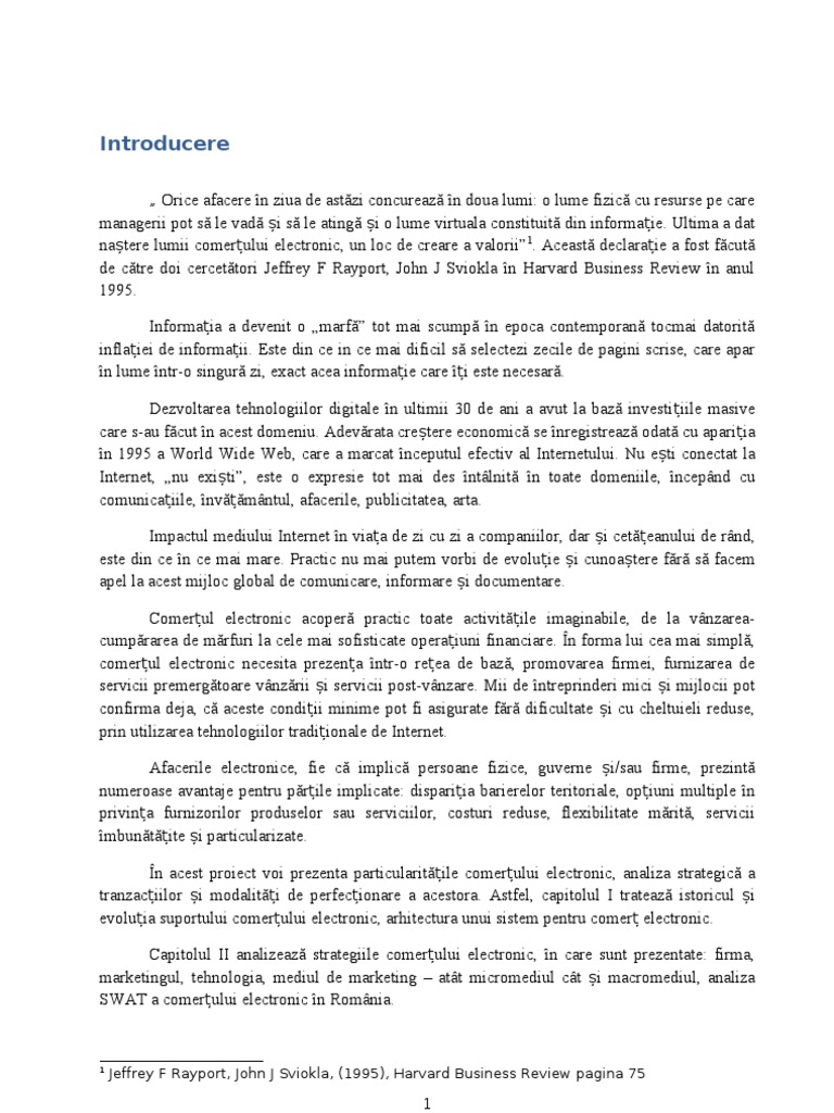 naștere lumii comerțului electronic, un loc de creare a valorii”1. Această declarație a fost făcută