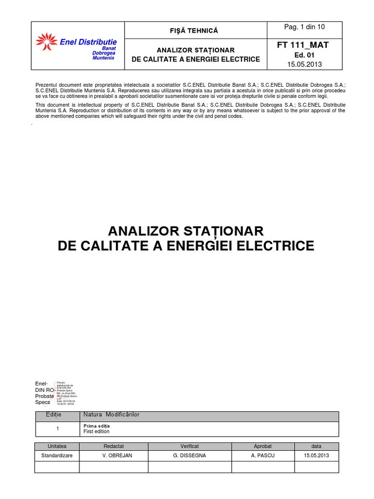6.5.15 Documente care nsoesc analizoarele staionare de calitate a energiei electrice ................................... 10