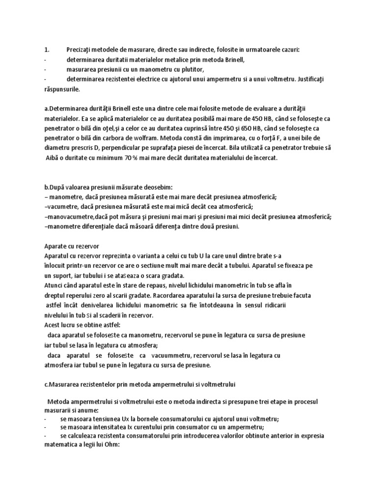 Precizai metodele de masurare, directe sau indirecte, folosite in urmatoarele cazuri: