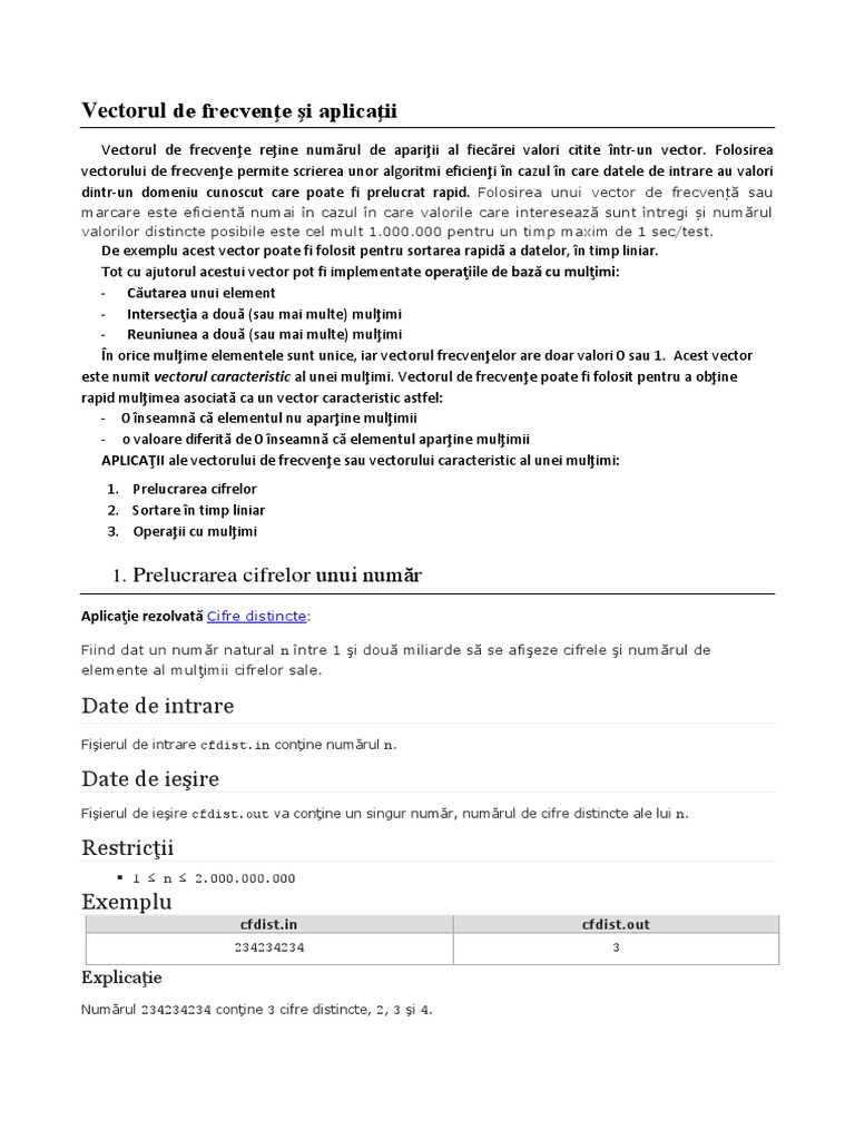 vectorului de frecvene permite scrierea unor algoritmi eficieni n cazul n care datele de intrare au valori