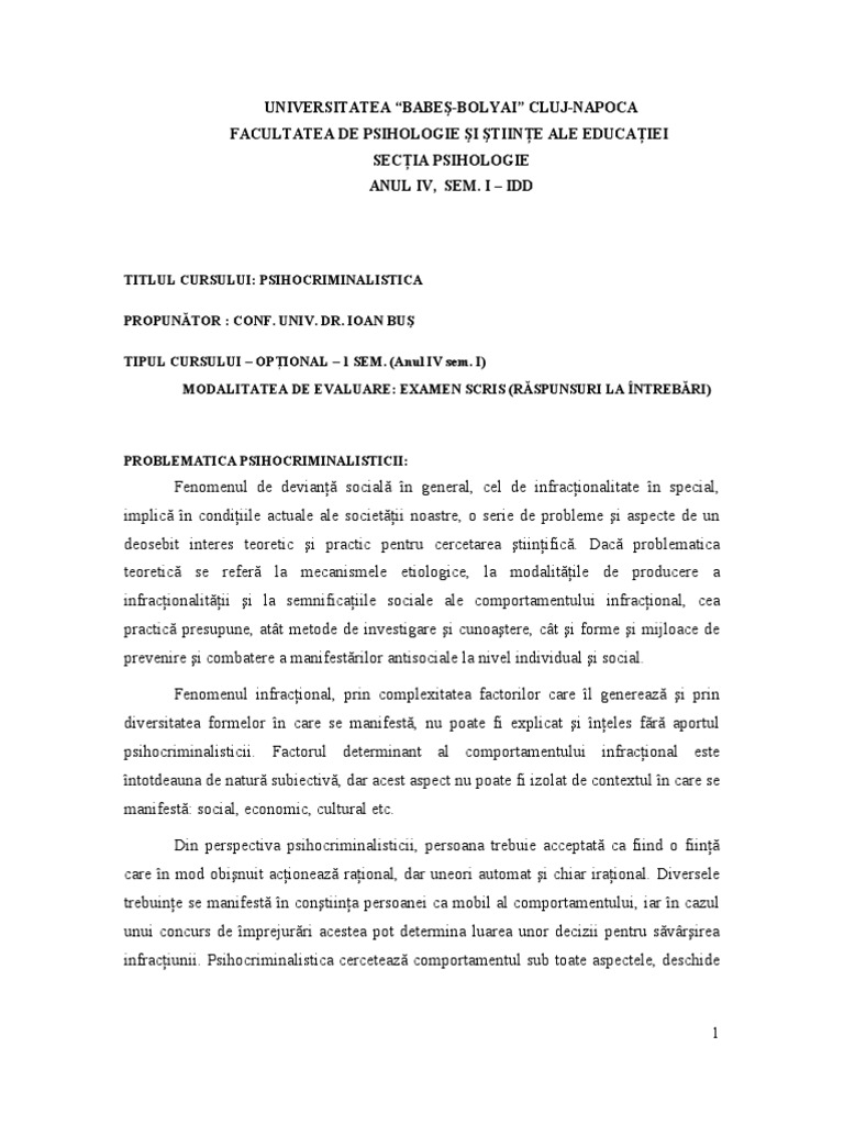 Buş, I. (1997). Psihologie judiciară. Cluj-Napoca: [Link] Universitară Clujeană.