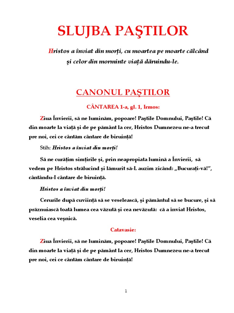 Ziua nvierii, s ne luminm, popoare! Patile Domnului, Patile! C